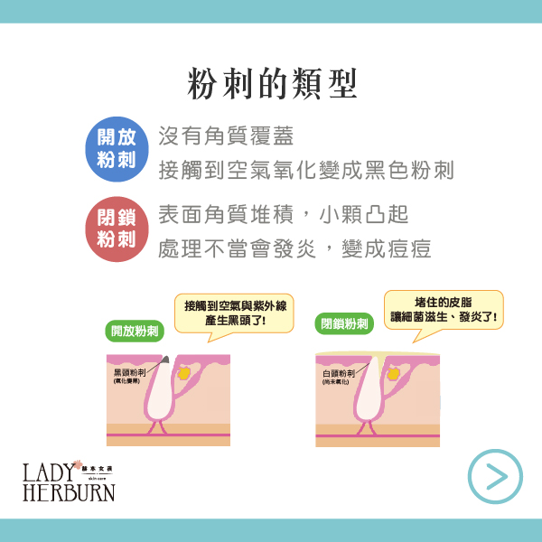☝️清潔不當、皮脂腺功能旺盛、遺傳、熬夜、氣候、情緒與用藥角質代謝異常…等,很多原因都是會形成開放或閉鎖型粉刺。