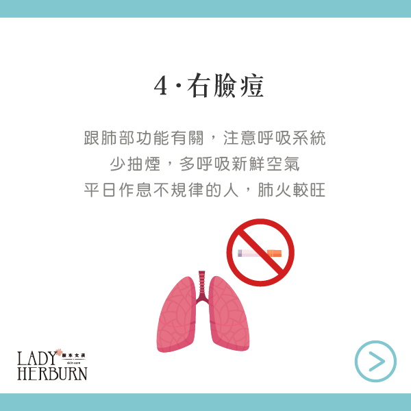 右邊臉頰:很多都是肺火過旺,要注意作息以及呼吸系統。
