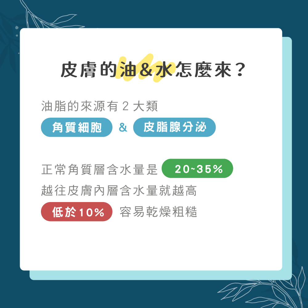 潤澤是健康肌膚的條件,潤澤的基礎是水分,而維持潤澤的條件就是油分。