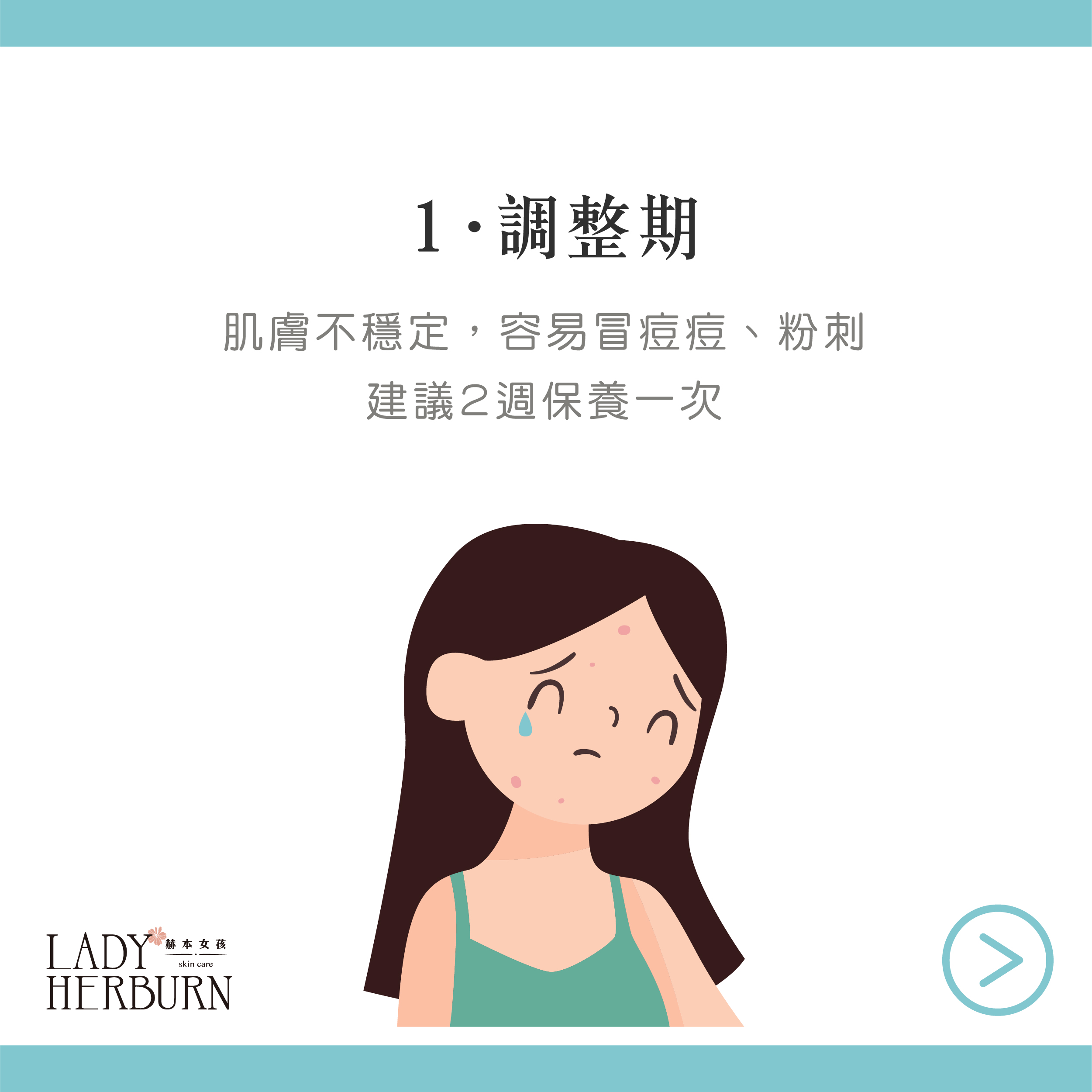 1- 調整期(2週一次):肌膚狀況不穩定的時候就容易長痘痘&粉刺。