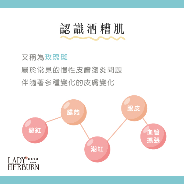 又稱為玫瑰斑 屬於常見的慢性皮膚發炎問題 伴隨著多種變化的皮膚變化